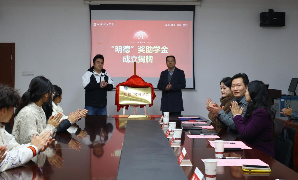 仪式伊始,在全体与会人员的共同见证下,王俊与许明旺共同为“明德”奖助学金揭牌,标志着此项承载着校友深厚情谊与殷切期望的奖助学金正式启动。