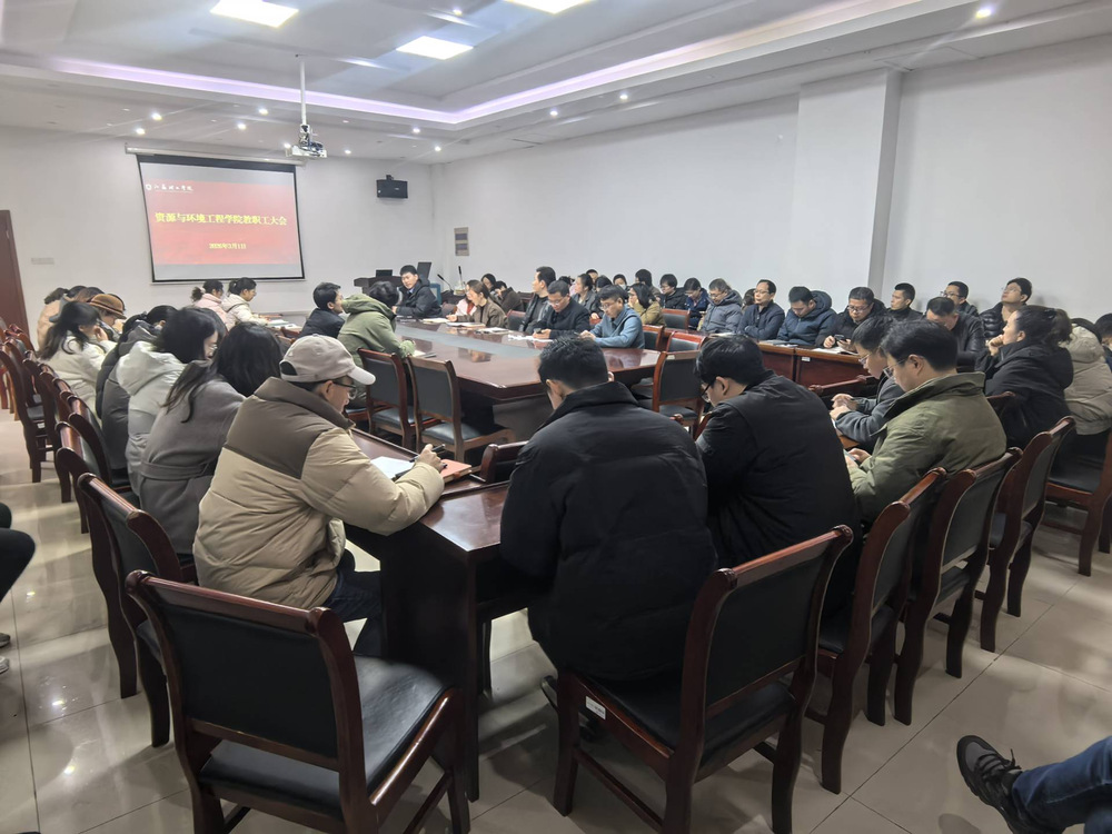 2026年3月1日上午10点,资源与环境工程学院在5-125会议室召开新学期工作部署与安全稳定会议。学院党政领导班子及全体教职工参加会议。会议围绕新学期教学安排、实验室安全、科研申报、学生管理及学院发展规划等重点内容进行全面部署,明确新学期工作方向。