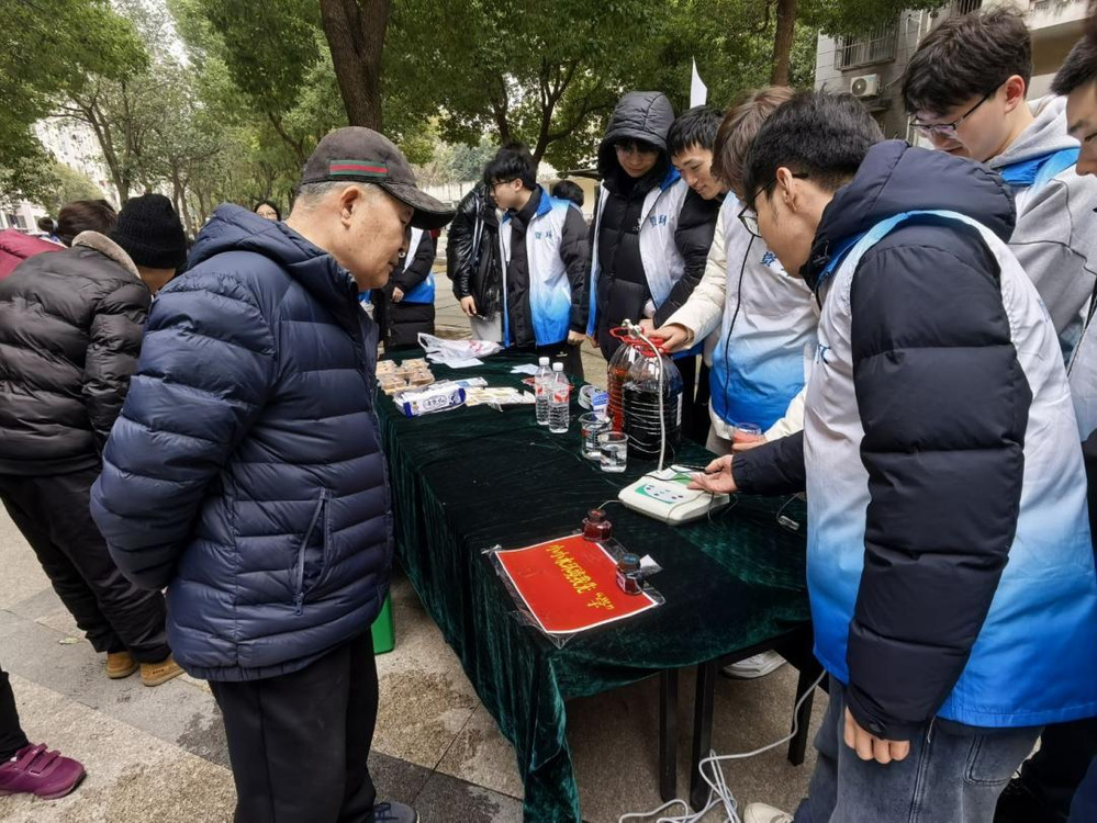 本次活动特别结合学院应届毕业生课题“新型铁碳微电解材料制备及降解阿奇霉素研究”,将学术成果转化为便民服务内容,为水质检测环节注入专业支撑。